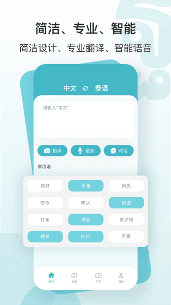 2、主推的不是学习,而是泰语的翻译,里面有很多用户们需要用到的翻译方式。