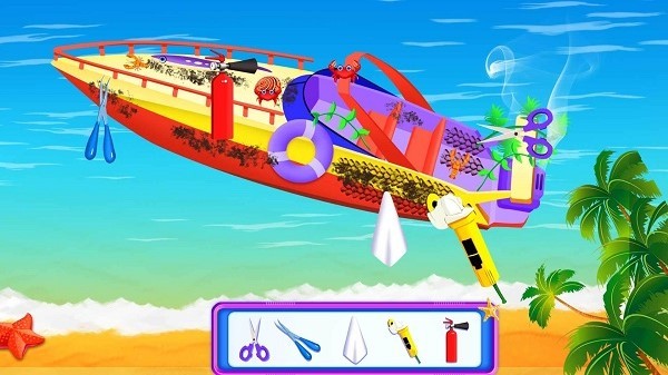 4.爸爸检修游艇发现游艇的引擎坏了