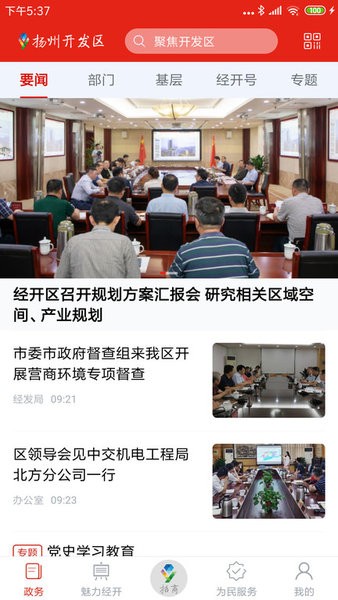 4、包含要闻、部门、基层、经开号、专题等栏目;