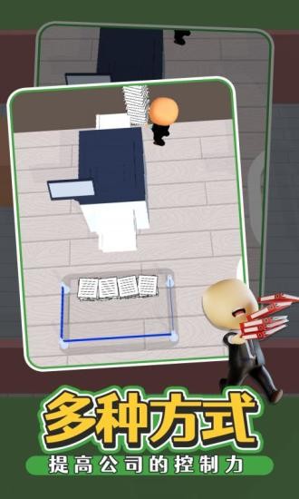 这是一款模拟成为老板的经营公司类游戏,玩家在这款游戏中将要经营好自己的公司,需要管理其他员工的本职事情,还可以招募更多有志之才来我们的公司,为公司盈利更多的钱!游戏玩法简单易上手,可以让玩家感受到当老板的感觉!