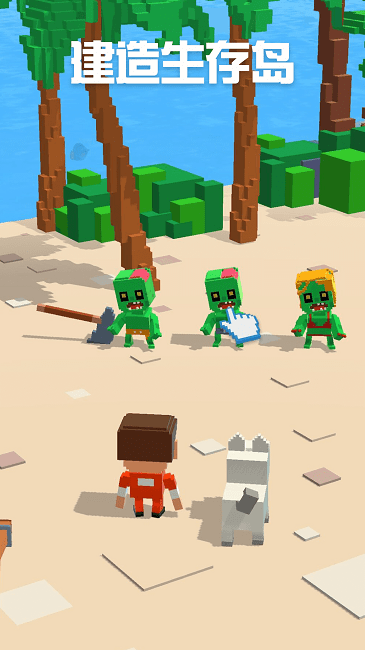 建造生存岛手游一款建造生存游戏,游戏中,由3D模拟海上孤岛,玩家需要操作角色击败僵尸,海盗,砍伐树木,获得金币,才能购买足够资源搭建房屋,遮风挡雨,生存下去!