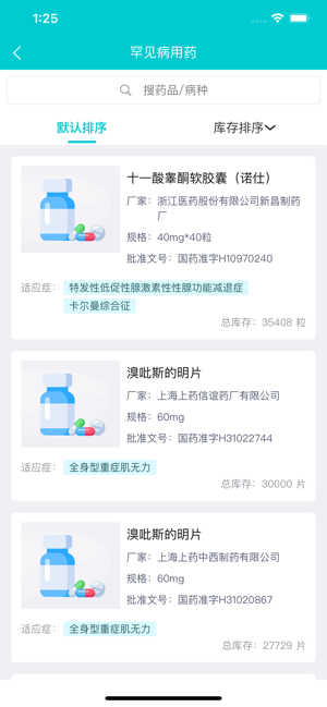 针对具体罕见病药品进行库存统计,快速找到有库存的医院。