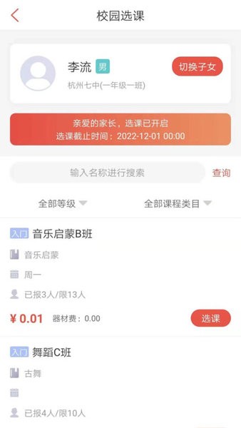4.校园选课:进入线上校园为孩子选择各种培训课程;
