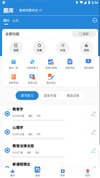 根据各省以及个人教师招聘、教师资格考试考点,实时记录练习情况,并自动错题统计,系统自动收集考试或练习中的错题并加入错题本,可在错题本重做错题。