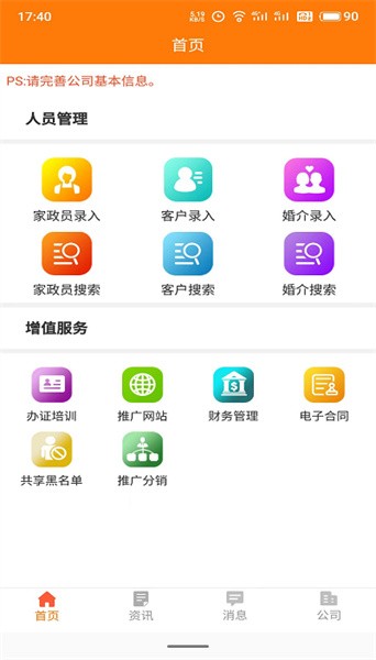 家政办公app是专门针对家政公司出品的一款手机办公类软件,在这里用户们能够找到非常多的便捷功能进行使用,让自己能够在工作的时候省下不少的时间,帮助自己能够自由的享受到非常多的便捷。