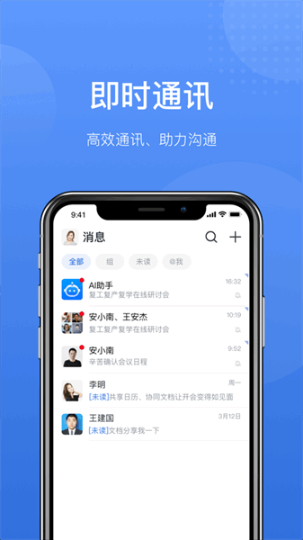 提供覆盖移动端、桌面端的办公协同能力,本期功能提供协同平台的基础功能,包含即时通讯、云文档、共享日历、应用等。