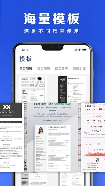 这个word简历模板手机版真的很实用!它提供了海量的专业简历模板,不管是找工作、实习还是留学都能找到合适的。操作特别简单,随便选个模板,填上自己的信息,一键排版就搞定了,省事又好看。最棒的是还能中英双语切换,适合需要海外求职的人。生成简历后还能直接发给HR,感觉效率会大大提高。而且安全性也不错,数据加密技术保护隐私,用着放心。作为一个正在找工作的学生,我觉得这个工具真的很有帮助,特别是还有真实案例参考和优化建议,让简历更专业更有竞争力。总的来说,这款app真是求职必备啊!