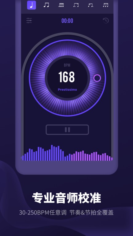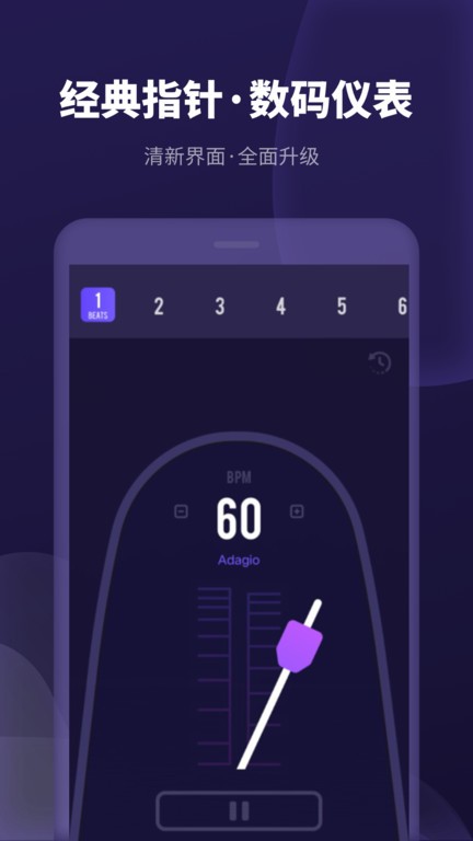 钢琴、吉他、尤克里里、小提琴、贝斯、古筝等乐器,或者是节奏大师、节奏达人这类音乐游戏,想弹得好玩得好,对于节拍节奏的把握就极其重要。一款好的节拍器可以很好地帮助我们!节拍器经典版,就是一款用心制作的节拍器APP,专为音乐爱好者研发。