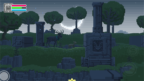 我个人觉得这款游戏特别有趣的地方在于它把生存冒险和解谜元素结合得恰到好处。尤其是在荒野中遇到各种野生动物,甚至还能生小鹿,看着这些“孩子”跟在身边一起冒险,虽然最后可能都会被杀掉转世,但这种体验真的很独特。画面虽然是像素风格,但场景设计得很唯美,阳光和夜晚的交替更是让整个游戏像一幅画一样吸引人。