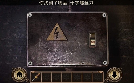 1、游戏开始后是在一个【酒窖】里。点击酒桶,在地上获得一叠报纸。点击右边墙上的电闸,上面有把螺丝刀。使用螺丝刀卸下电盒上的4个螺丝后,发现里面的保险丝烧断了。点击门的把手,掀起钥匙洞上的铁片(手指按住铁片滑动到上方使铁片不掉下来),提示钥匙在外面。退出视角后再点击门的下方,有条缝。把报纸塞过去后,重新回到门把 手的视角,用螺丝刀将钥匙捅出去后,钥匙掉在报纸上。把报纸抽回来拿到钥匙,塞进钥匙洞后,按住门把手扳动后开门出去。(这个游戏很多门都需要这样开,不 单纯只是点一下门把手,要按住把手模拟开门的动作扳动一下才能开。)