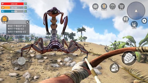 2、制作武器和搭建基地,驯服地图内的野兽。