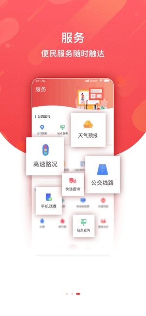 -- 服务:在线教育、公积金、违章查询、高考成绩、天猫小米、缴电费、有线电视、文明实践