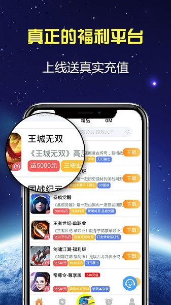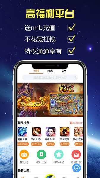 1、拥有bt,满v,gm等丰富游戏资源,让你玩转游戏。