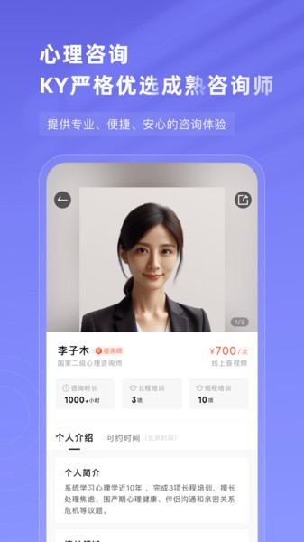 KY全球优选华人心理咨询师入驻,提供预约制专业心理咨询,高清视频通话功能令你和你的咨询师畅通交流。