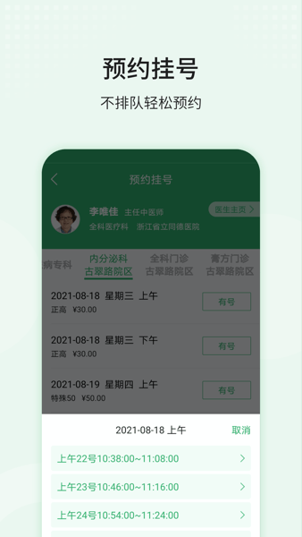 5、满足自由挂号,不仅可以自选专家号而且可以自选看诊的日期;