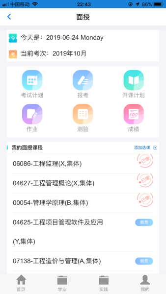 基于现有高等教育自学考试社会助学考生面授助学形式,主要功能包括:教学计划管理、报考管理、面授成绩、平时作业和综合测验、通知公告等功能,方便高校线下辅导,线上管理 。使用者只需要通过互联网界面,进行简单易用的操作,便可快速高效地以信息化手段记录老师教学情况以及考生学习情况、作业和测验情况等;