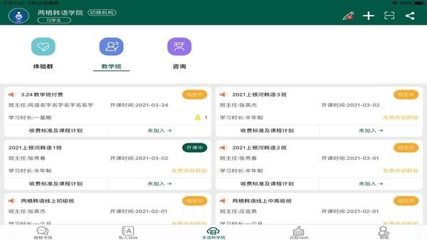 4. 两栖蛙蛙HD建立了直播教室,老师可以开直播课,将课件提前发给学生;学生可以预约参加,预习课件。