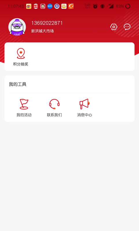 2、在我的页面,点击收货地址、全部订单或我的工具