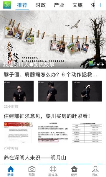 这个黎川发布新闻客户端看起来挺实用的,特别是对本地人来说。里面不仅有各种新闻资讯,还有文旅信息和产业链条的动态,感觉信息量很大。软件功能很齐全,有融媒、便民服务、新闻、视频和我的这些板块,涵盖了生活的方方面面。特别是便民服务,像交通出行、办事指南这些都很方便。新闻更新也很快,随时掌握最新动态。