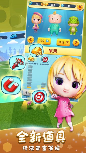 2.游戏内的各种各样的道具都有自己不同的效果,我们需要用这些道具来帮助自己跑的更远.