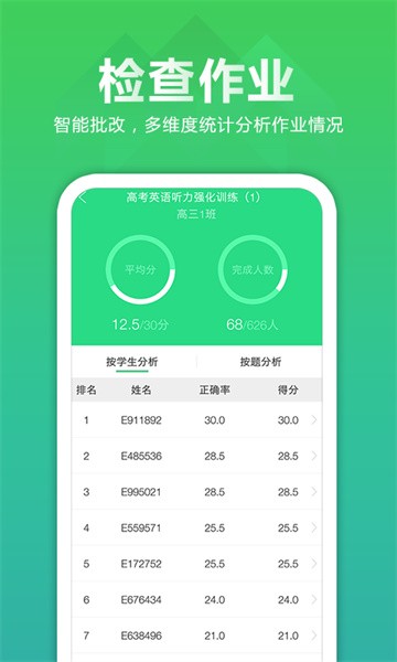 听力百分百APP教师端是辅助英语老师教学工具,特邀北大教授及一线老师命题、录音材料语音纯正,题材新颖,紧扣高考;老师可以创建班级、一键布置作业、学习数据智能分析,学情一目了然;让老师教学更有效。
