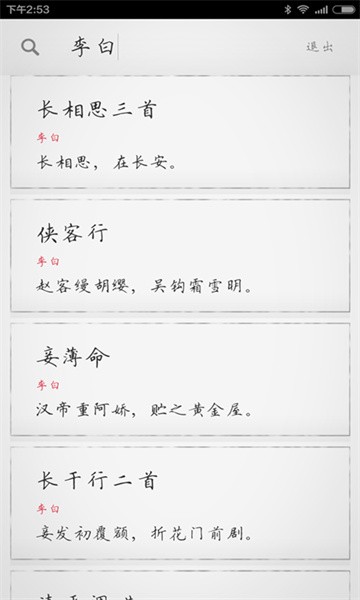 界面清新靓丽,在清新、幽静的界面环境下诵读唐诗,陶冶情操。