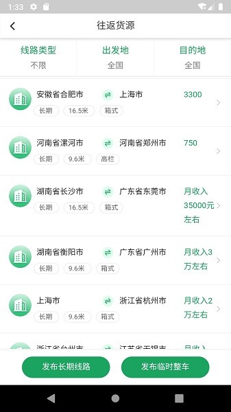 1、一键快速发布路线信息,便于司机接单为你快速配送,提高路线配送的专业性,让配送更便捷;