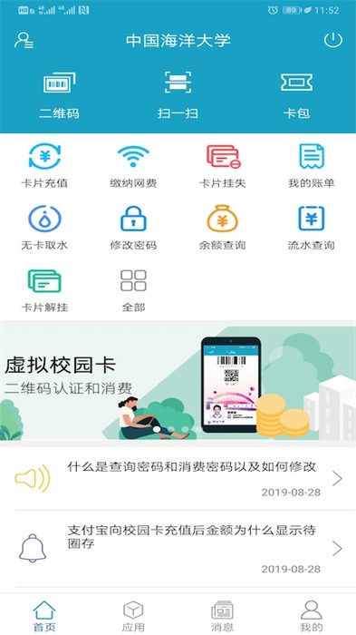 虚拟校园卡逐步整合校内身份认证、消费支付、后勤生活、缴费等等功能,打造出线上线下无缝对接的多介质服务体系。