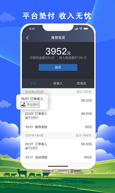 【结算便捷|收入无忧】 完单无需催付款,平台即垫付佣金秒到账;每周提现到支付宝,提现方便又快捷;