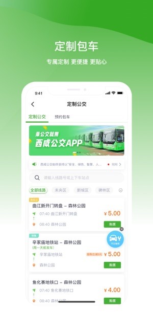 定制您的专属公交线路,在线购票、电子车票、线路招募等,实现一人一座,采用公交专用道,一站直达,为您提供最优质的专属出行服务。