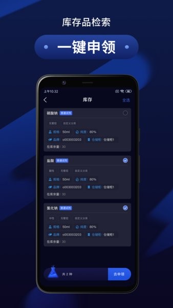 万里危化智管app最新版能够在手机上管理危化品,可以在线进行采购和领取申请,有非常详细的化学品库内库外统计,对于实验室的设备和耗材都能进行统计和管理,确保实验的安全性。