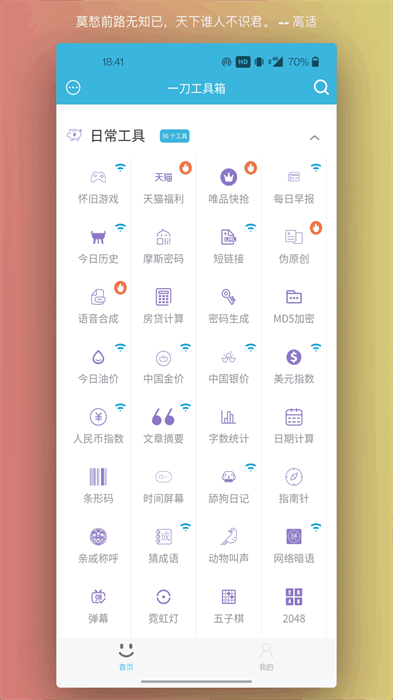 软件的亮点也不少,分类管理很清晰,生活、学习、娱乐都有覆盖,想找什么工具一目了然。新增的功能也很实用,比如近反义词、谜语大全这些,感觉对学习挺有帮助的。总的来说,这款工具箱确实方便了很多,适合需要多种功能又不想装太多app的人。希望以后能继续更新更多有趣的小工具!