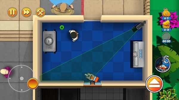 《神偷鲍勃2 robbery bob 2: double trouble》是《神偷鲍勃》的第二部作品~能让玩家过一把“入室盗窃”的瘾。玩家扮演的鲍勃在的帮助下脱狱,结果不得不帮助到处盗窃。不同任务中,鲍勃潜入的房子都各不相同,有轻松简单的民居,也有保安严密的警察局。玩家要观察好房间内走动或巡逻的人,计算好潜入路线,才能神不知鬼不觉地偷出任务品。