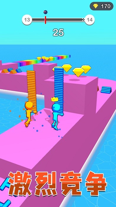搭建楼梯并克服障碍,赢得梯子比赛,彩色图形,上瘾的跑楼梯游戏,易于玩的控件只需构建并运行。