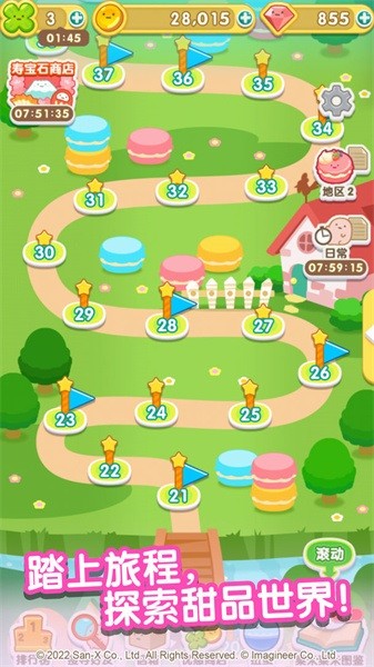 4、完成挑战后还可以解锁丰富的道具奖励。轻松上手,免费游玩!单手点击,爽快操作!充满甜点的可爱世界!来自各个作品的人气角色!角色们各自的可爱技能表演!滚动你的“粟米粟米”,说不定会有好事发生!