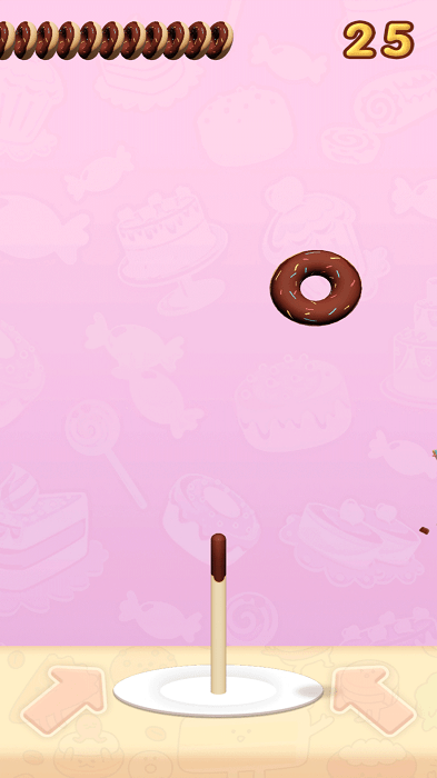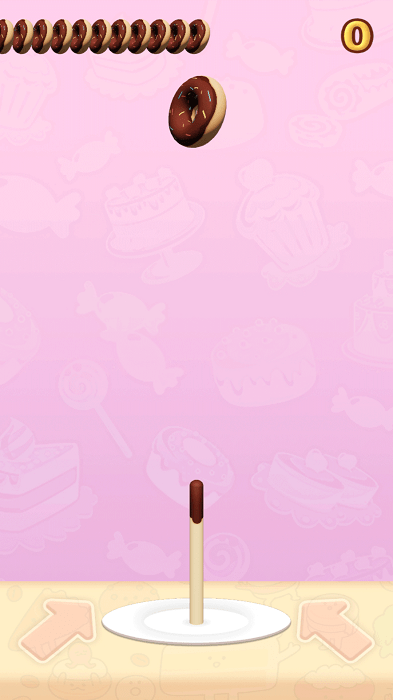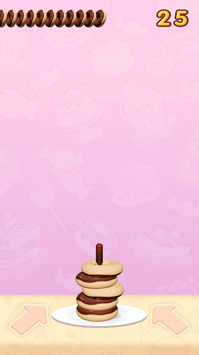 通过点击左右两侧的按钮,玩家可以让所有的甜甜圈落在棍子上,然后把它们放在上面。