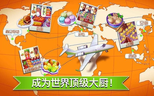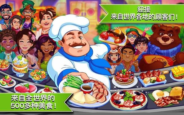 游戏中你可以烤披萨、做汉堡、煎牛排,还能在全球各地的餐厅里挑战不同的烹饪任务。玩法简单有趣,只需要敲击屏幕就能完成烘烤、烧烤和装饰食物的动作。游戏还提供了100多种原料,可以用来制作各种美味佳肴,比如甜甜圈、热狗、冰淇淋和蛋糕等。