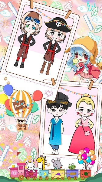 您可以在洋娃娃头像玩偶游戏里装饰角色和背景。
