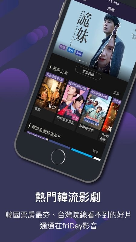friDay影音是正版4k高画质支援不同装置跨平台接续观看的线上影音服务,提供独家优质内容,包含强档好莱坞电影、最新韩国电影、跟播韩剧、超夯日剧、优质台剧、人气陆剧、热门韩综、直播新闻、霹雳布袋戏、免费0元电影与新番动漫线上看,更有5G明星多视角、KPOP应有尽有,娱乐不间断!