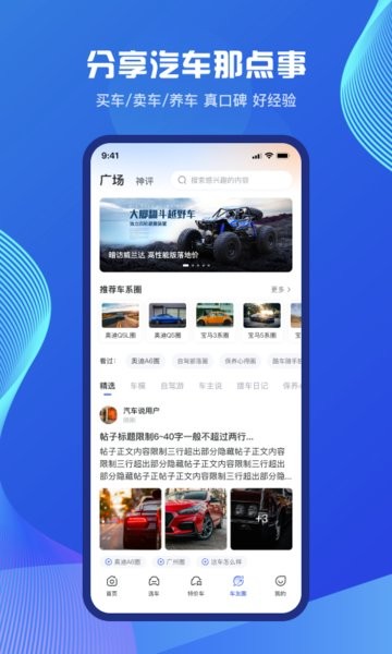 汽车说这款App看起来挺有意思的,主要是为汽车爱好者和车主提供各种资讯和服务。作为一个懂车又爱车的人,我觉得这个软件应该能帮到不少想要买车或者养车的朋友们。里面不仅有最新的汽车资讯、新车评测,还能在线选车、询价,甚至还能估价,功能挺齐全的。