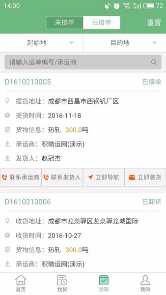 找货服务,直接根据起始地、目的地等条件进行找货筛选