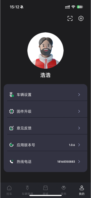 运用操控功能对个人的智能车辆进行启动、关锁等多种操作;