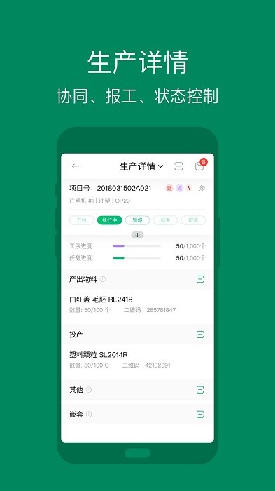 软件亮点包括生产进度的实时掌控、多维质量信息汇聚、精准任务分配等功能。它还支持标识码管理、仓储业务管理、生产执行管理等实用功能模块。更新日志显示,成品出场和界面优化是最近的主要改进方向。