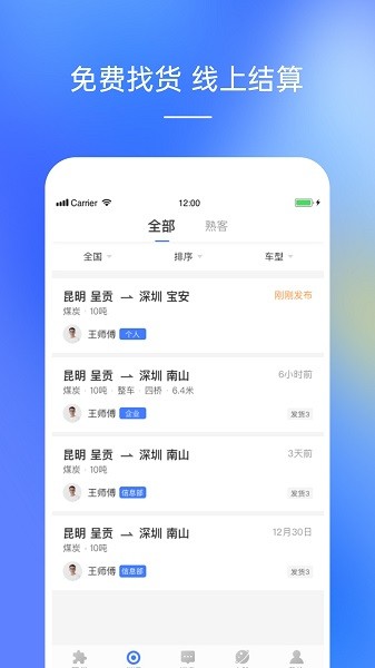 配齐物流司机是一款专为货车司机设计的便捷软件,操作简单又省心。它能帮司机快速找到附近的货源,还能直接接单,非常高效。平台上有各种各样的订单,覆盖城市、城乡和城际运输,选择很多,司机可以根据自己的需求挑选合适的货主。