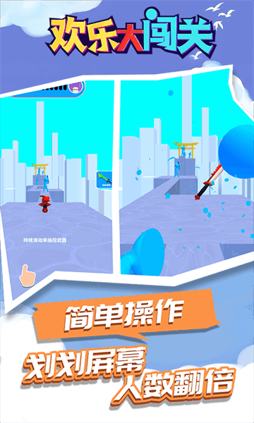 《欢乐大闯关》玩家需手脑结合一边控制火柴人躲避各种障碍前进,一边选择可以让火柴人数量最大化的路线。玩家在关底还会遇到各种造型的巨大BOSS与威武雄壮独代高大城堡,只有击倒BOSS才能通过当前关卡。数量决定胜利,团结就是力量,不要放弃任何一个可以团结的小人,冲呀。