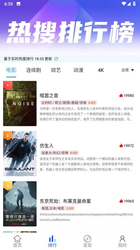 4、提供最新影视剧排行榜,实时更新,可以自由选择,没有任何的广告。