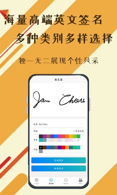 我觉得这款软件非常适合那些喜欢个性化签名的人。你可以根据自己的喜好选择不同的背景和颜色搭配,生成独特的签名效果。特别是支持中英文双语,满足更多场景需求,比如名片、朋友圈或者正式场合的签约。