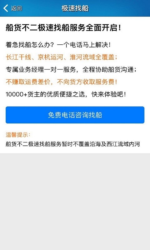 船货不二货主版安卓软件能够在线找船搜船,支持在线发布货源和公告,能够查看合作船舶的信息,支持进行运输的全方位管理,可以按照出发地目的地等来筛选适合条件的船只进行运输,交易便捷!