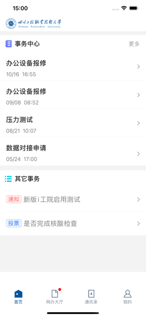 i工大,为师生提供校园应用移动入口,提供智能服务,包含教务、学工、人事、办公、办事、消息、通知等功能。