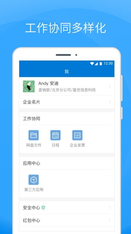 - 企业通讯录:清晰查看组织架构,快速方便找到相关同事。